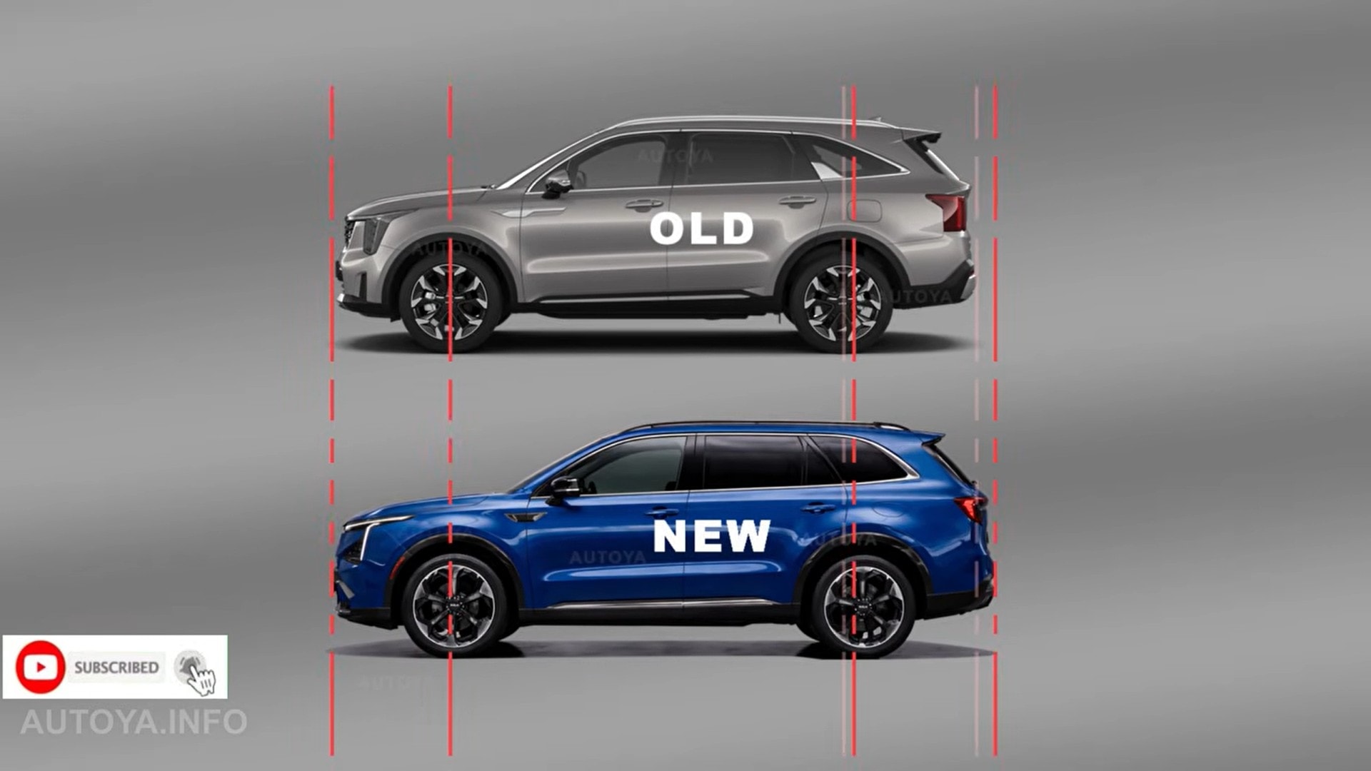 The same digital presentation places the rendered vehicle beside the current Sorento, so the contrast becomes direct instead of abstract. Timing also follows the product cycle already visible in the existing model. Sorento entered production in 2020, then received a facelift in 2023. From this perspective, a larger redesign now fits the sequence suggested by the source.
